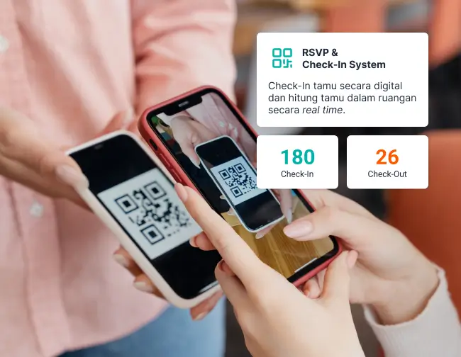 Buat undangan digital yang exclusive untuk masing-masing tamu. Dengan fitur qr code untuk filter tamu yang datang. Scan QR Code untuk memastikan tamu terdaftar.